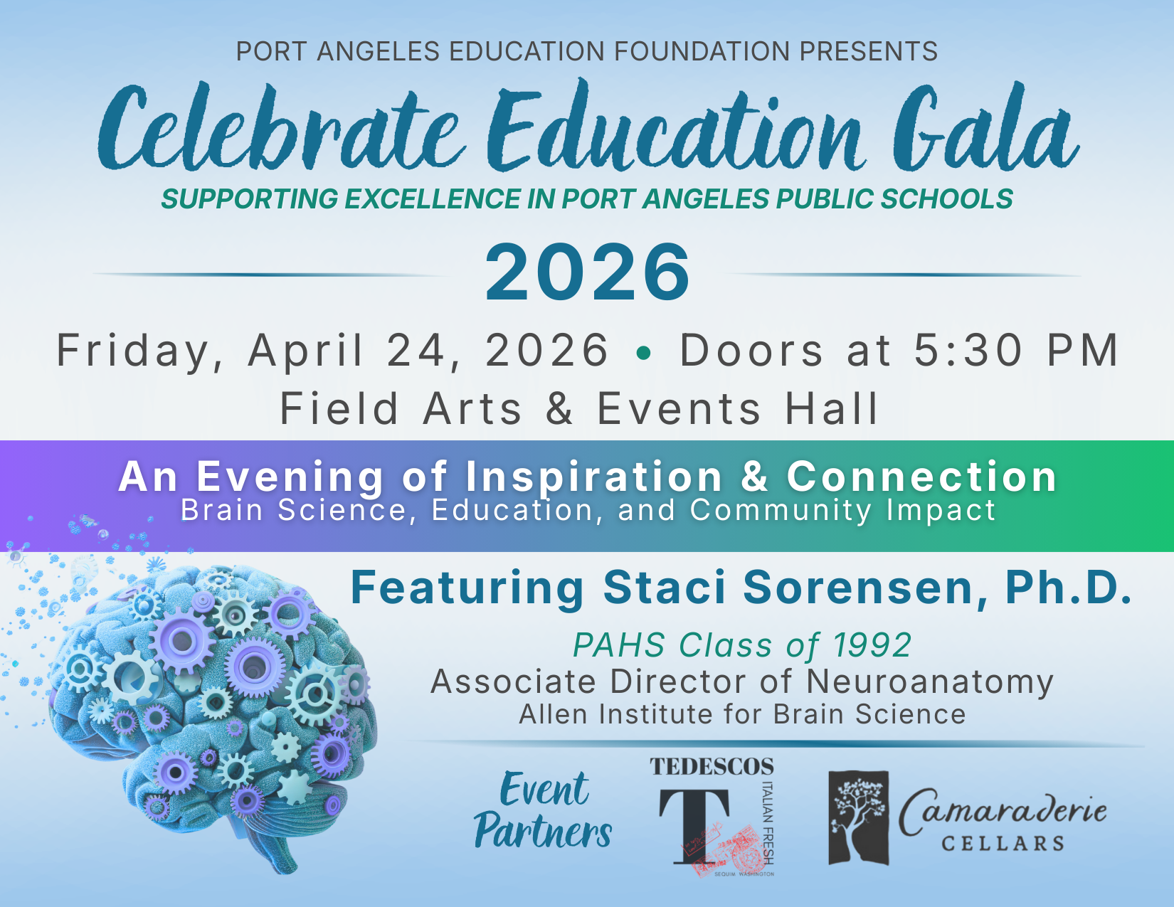 Join us for An Evening of Inspiration & Connection: Brain Science, Education, and Community Impact, PAEF’s annual fundraiser celebrating the people and programs that make a difference in Port Angeles public schools and the community.