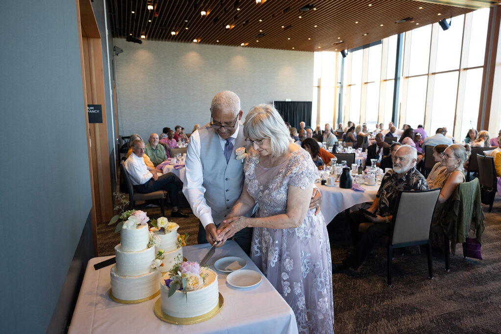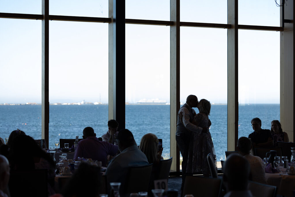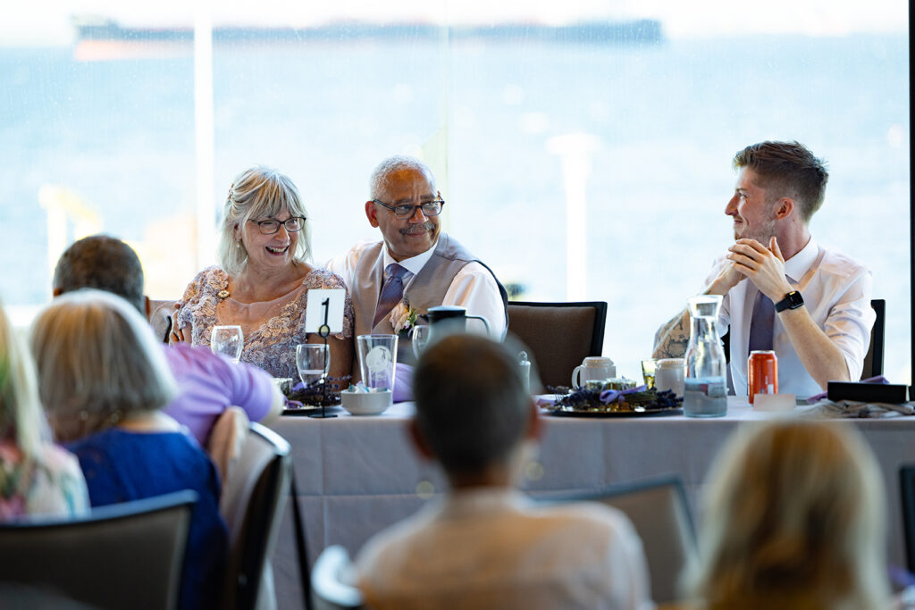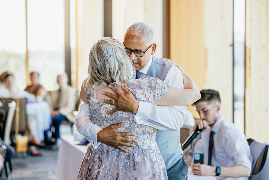 Their celebration continued at Field Arts & Events Hall, where guests were welcomed from the ceremony to a stunning waterfront indoor reception. With breathtaking views of the water, elegant modern design, and seamless onsite amenities, the space created an effortlessly sophisticated setting for dining, dancing, and celebrating with friends and family.