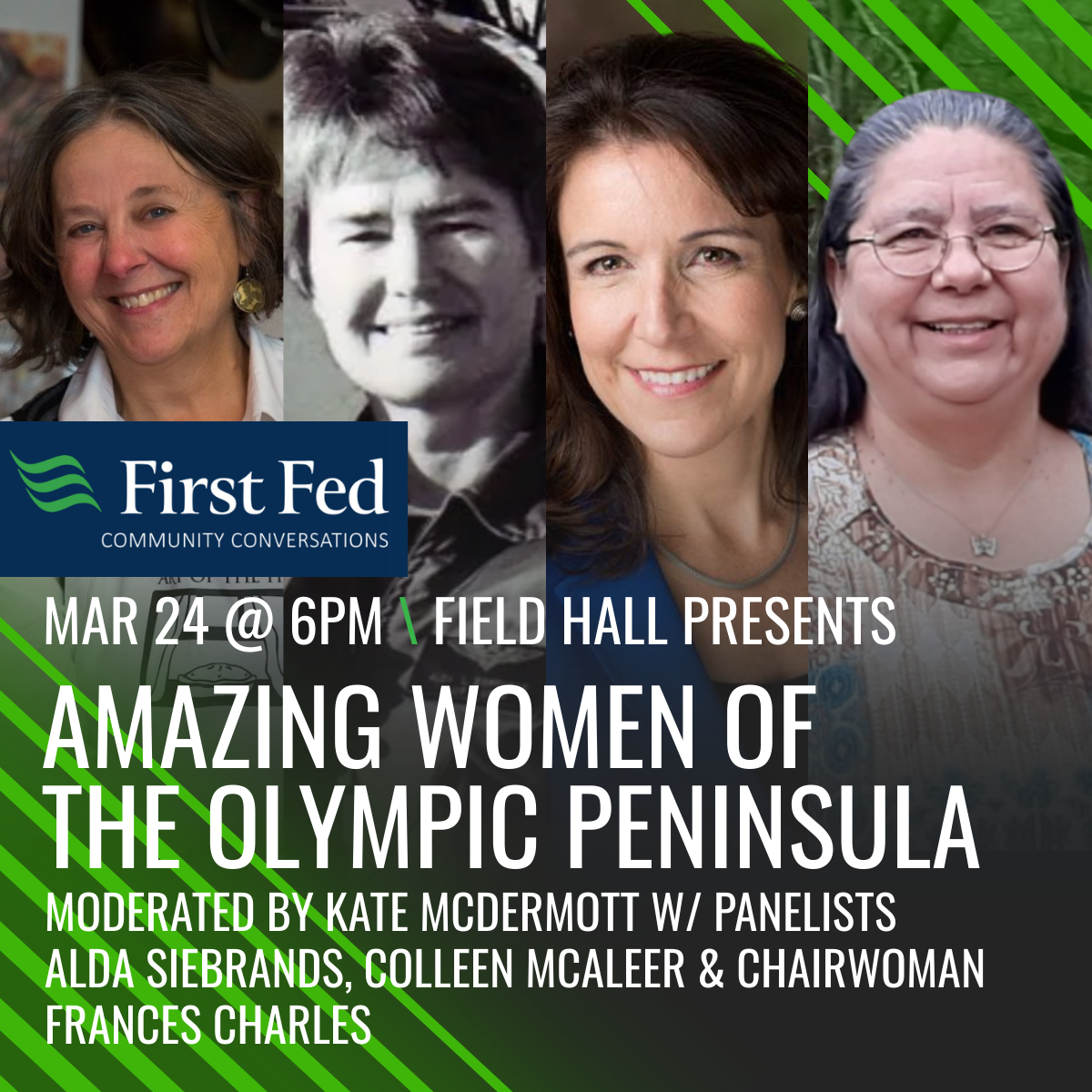 Field Hall proudly presents First Fed Community Conversation: Amazing Women of the Peninsula, a free and inspiring Women’s History Month event honoring remarkable leaders from the North Olympic Peninsula.