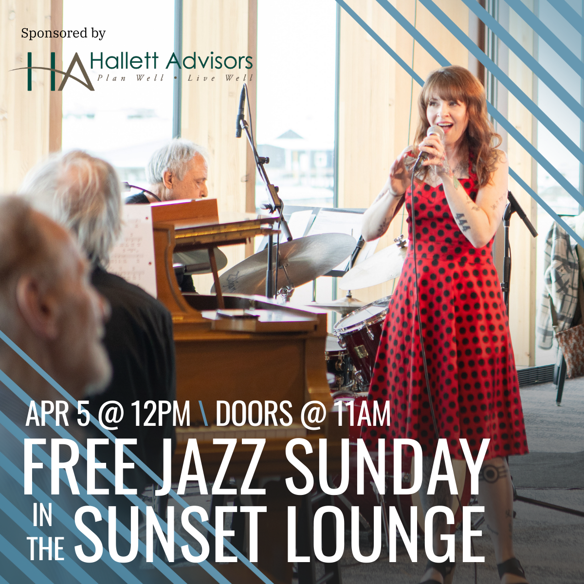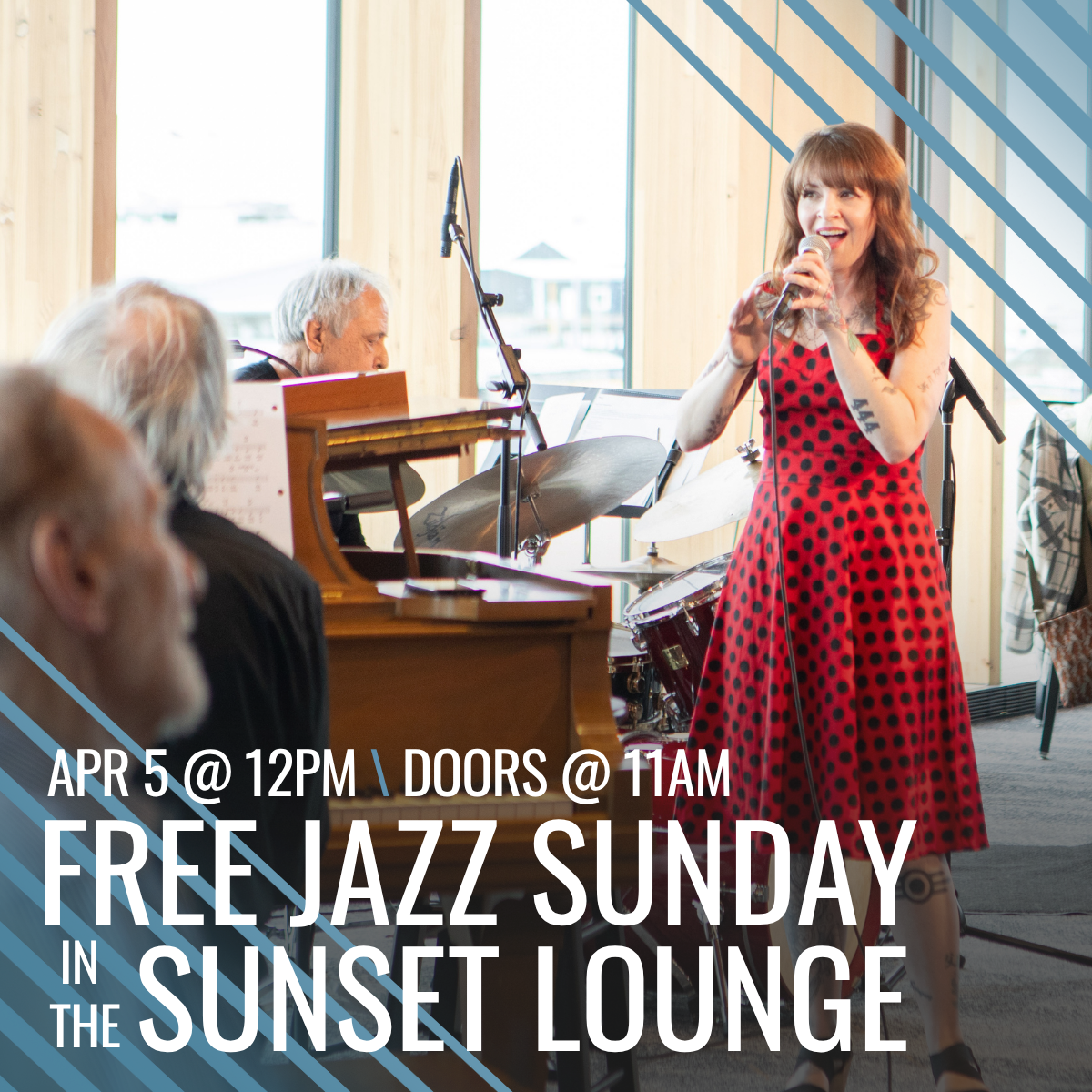 Join us for FREE JAZZ SUNDAY in the Sunset Lounge on Sunday, April 5th! Guest to be announced: check back for updates or join our mailing list to be notified when new announcements are made.