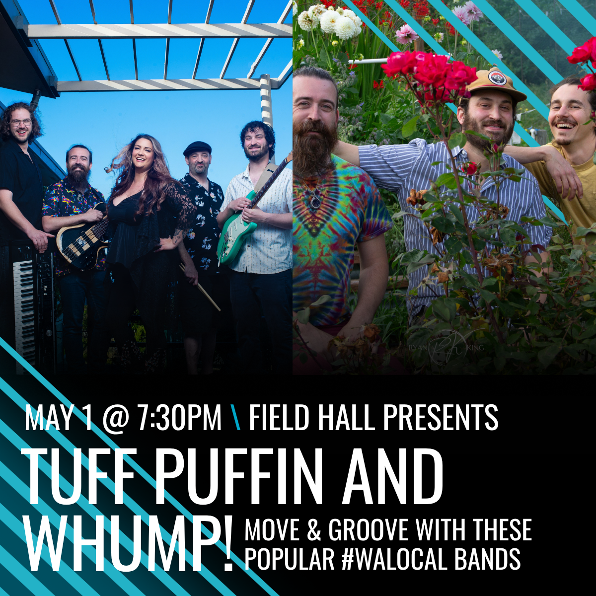 Get ready to rock at Field Hall with an electrifying concert featuring the high-energy and familiar sounds of Tuff Puffin opening the night, followed by the genre-bending, groove-heavy danceable headliners Whump!—a double bill guaranteed to keep you grooving and moving all night long.