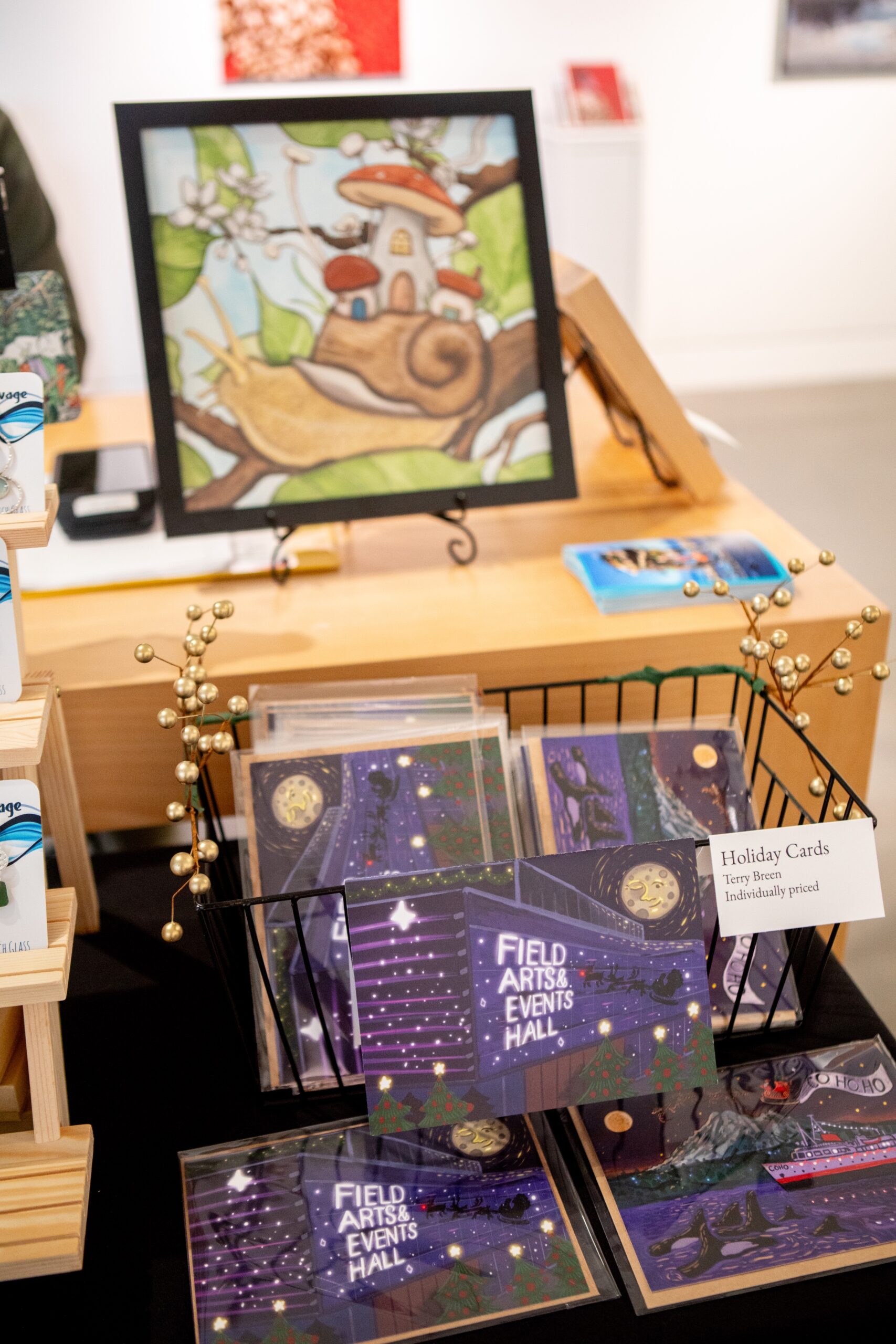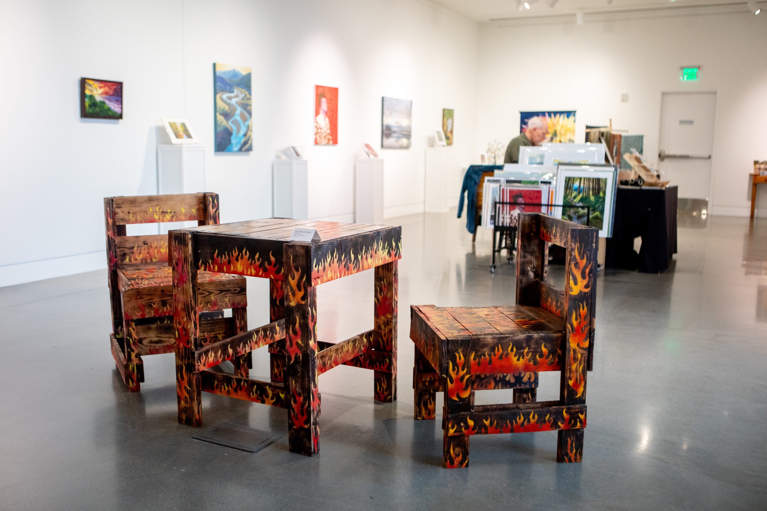 The exhibit showcases 21 local visual artists who have worked with Field Hall in some capacity over our first few years of operation, whether as featured artists in the Laura Cooksey Gallery or Waterfront Coffee Bar, Peninsula Performs! Teaching artists, or commissioned artists for our custom coffee tables.