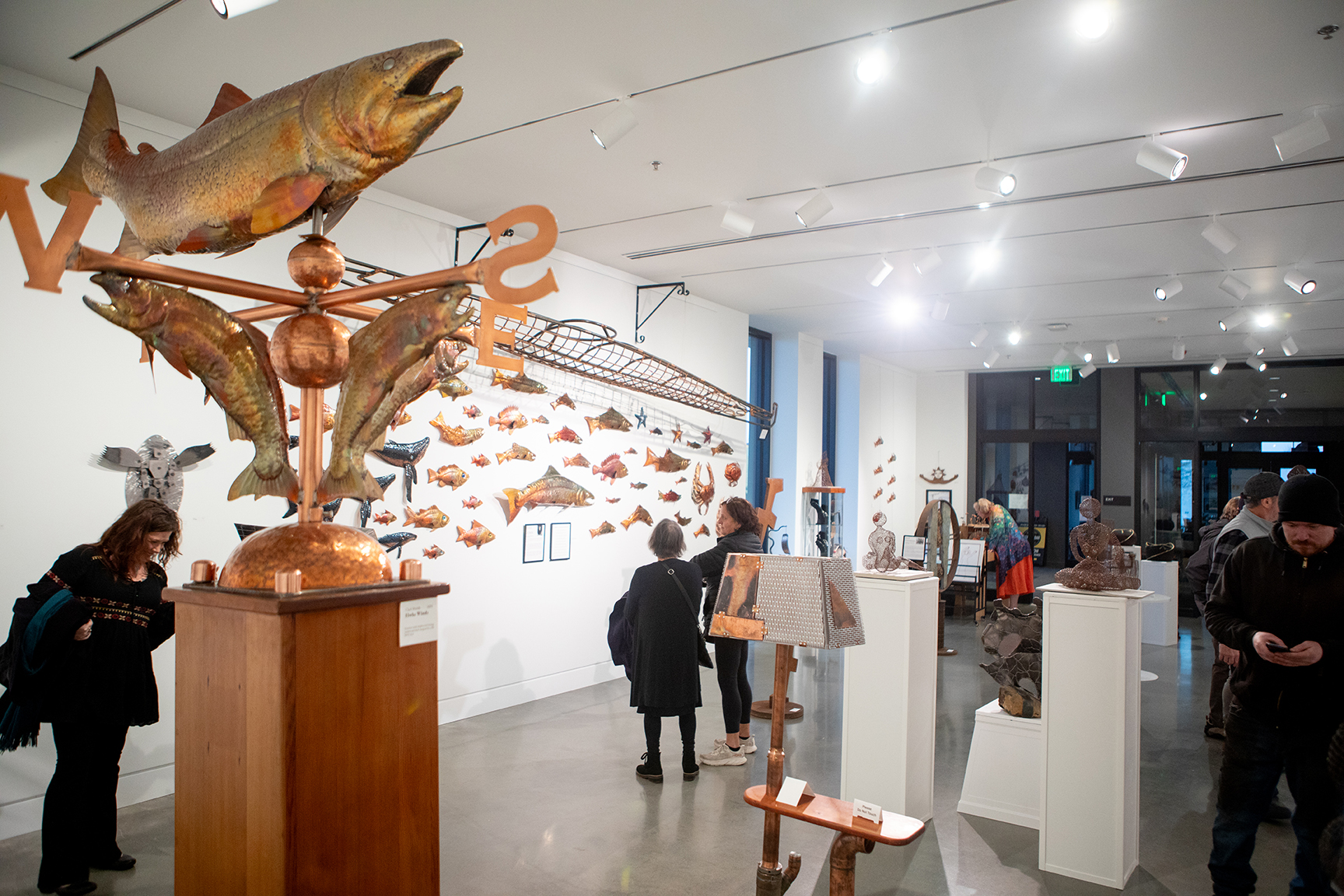 In the spirit of collaboration, friendship, and education, the Lower Elwha Klallam Tribe and Field Arts & Events Hall partnered to produce the very first show held in the new gallery at Field Hall. The show, titled “sčáy ʔaʔ cə nəxʷsƛ̕áy̕əm ʔay̕c̕ɬtáyŋxʷ” or “Creations by the Klallam People” showcased nəxʷsƛ̕áy̕əm artists from the Lower Elwha Klallam, Jamestown S’Klallam, and Port Gamble S’Klallam Tribes.